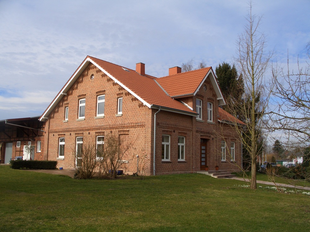 This house was constructed around the turn of the 20th century. Due to a missing beam it had massive cracks throughout the building. As a result water penetration had led to frost and moisture damage. The facade had to be renovated, a new concealed beam was installed, and the roof was redone with its original overhangs.
